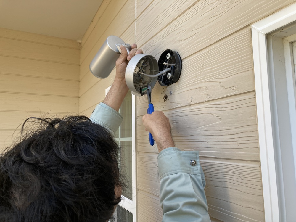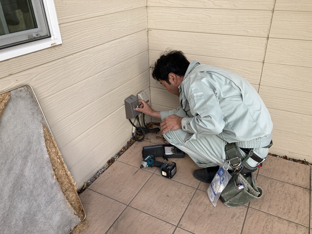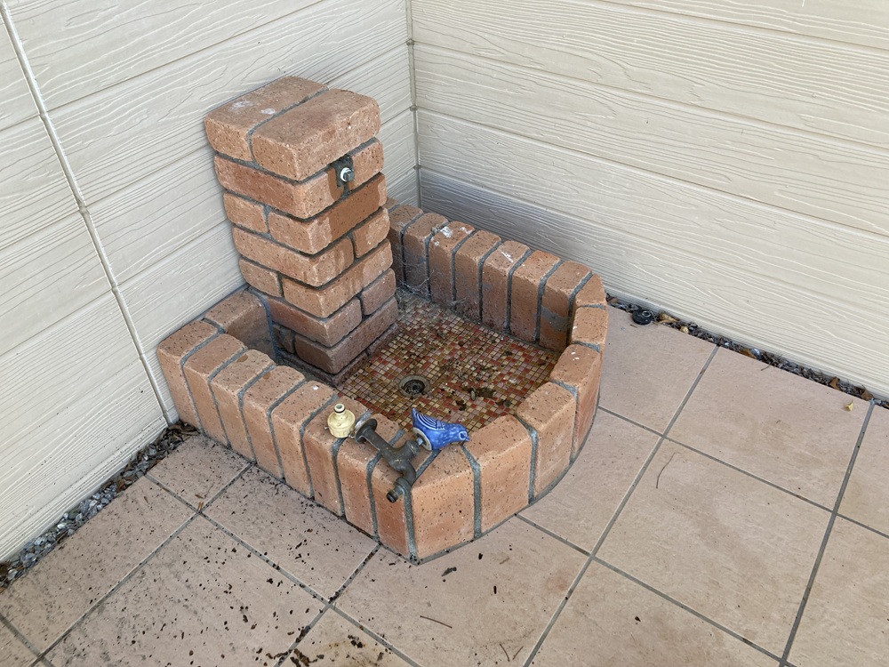 必要に応じて照明やコンセントを取り外したり、可愛らしいガーデンパンのデッキ水栓も取り外されてかつ閉栓をして、安心して解体工事に着手できるようにしていきます。