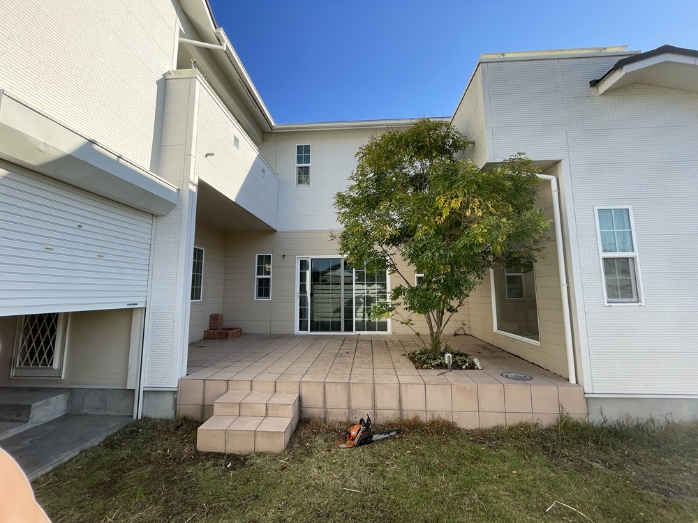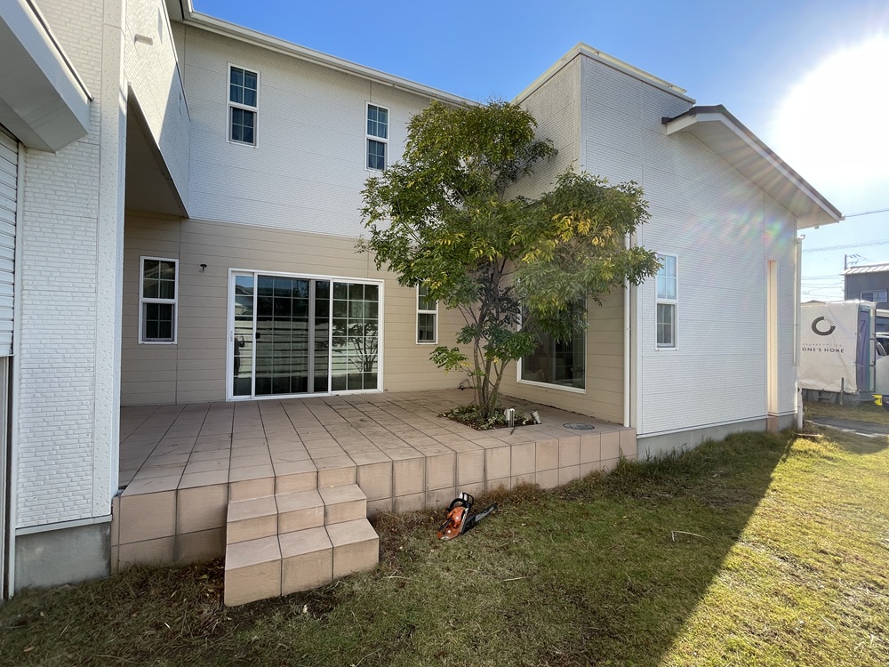 ご家族での楽しい記憶が残る素敵なタイルデッキ、またその中にある長い歳月で育ったシマトネリコの木に対しても色々な思い出や想いを重ねるところがありますが、リフォーム工事の進捗に沿って解体や伐採ならびに抜根に着手する時がやがて訪れてしまいます。