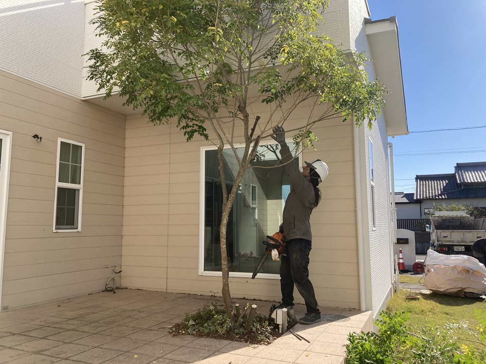 約18年という長い歳月を、ご家族と共にこの場で育ってきたシンボルツリーですが、いざ文明の利器を用いて切るとなればそれはほんの一瞬のことです。