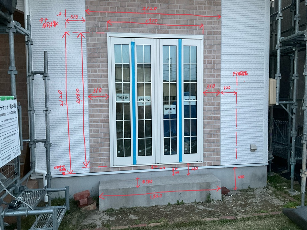 ここまで整ったら窓付近の寸法を詳細に採寸していきます。特にリフォームの場合全てが計画通り、計算通り、また図面通りにコトが進むとは言い切れません。