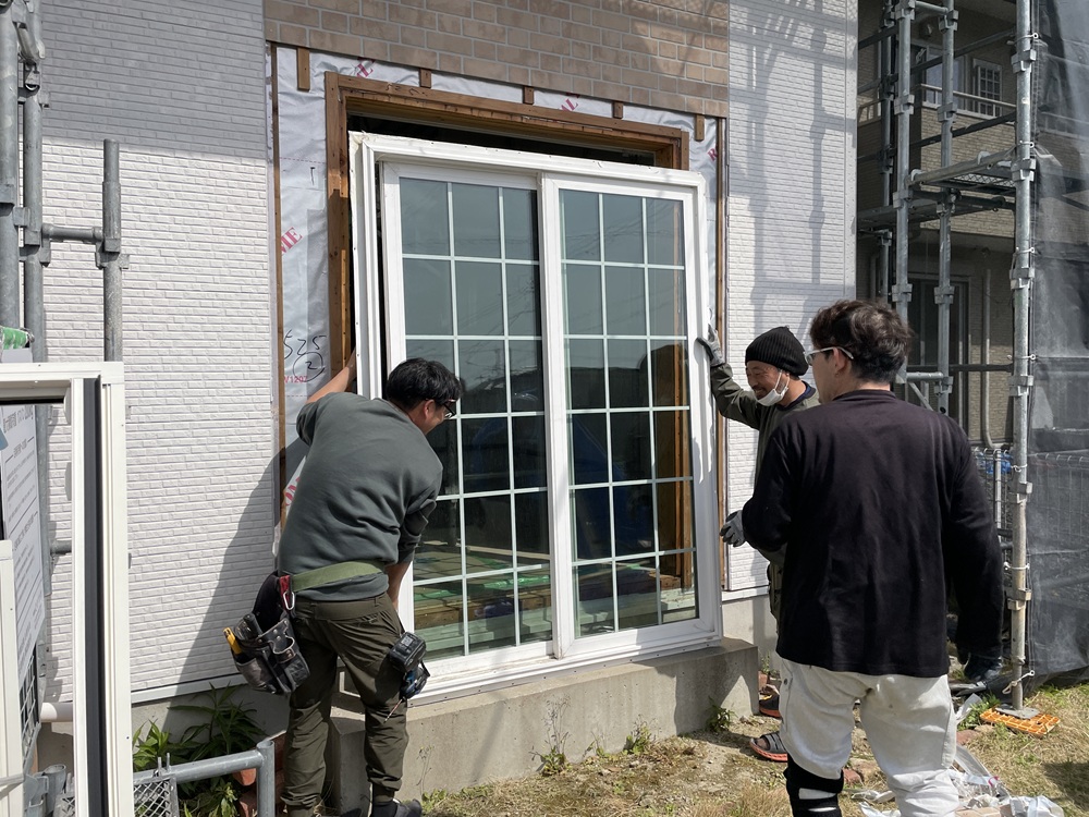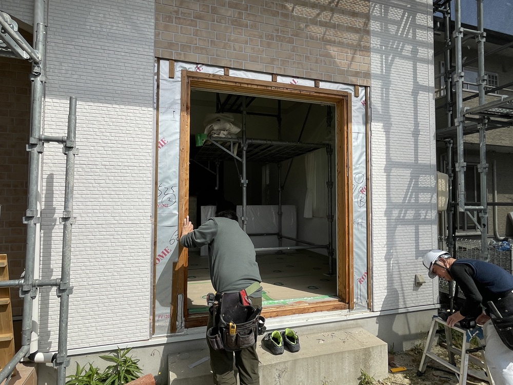 取り付けにあたっては窓に歪みが生じないように、しっかりと対角線の長さを測り直角を確認して取り付けることが大事です。また雨の心配がないようにフレームを入れたらすぐに扉を入れられるように手配しておくことも忘れてはいけませんね。