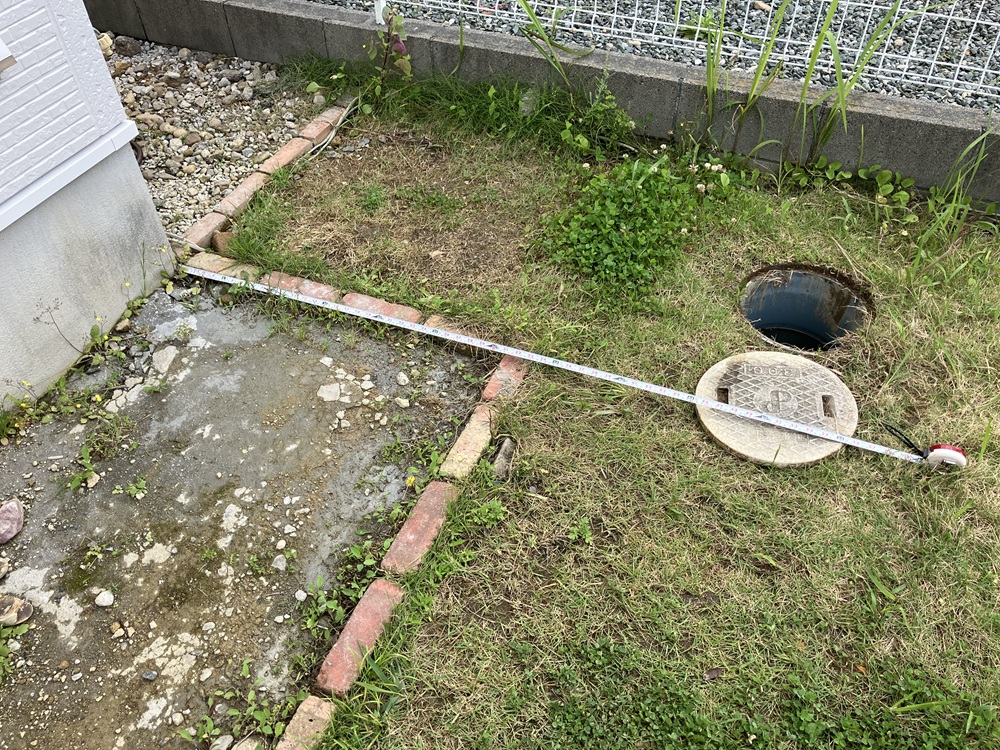 今回のデッキは床だけではなく、柱を建って屋根も造る計画ですので、風圧でもっていかれないようにしっかりと地面とつなげなくてはなりません。したがって柱の位置と排水管との干渉は致命的となってしまうわけです。