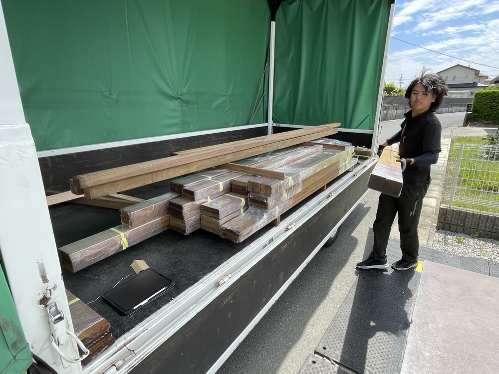 いよいよデッキ材が現地に搬入されました。