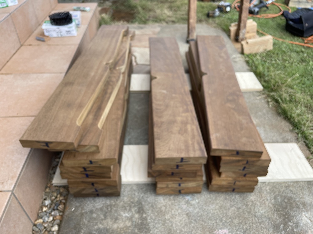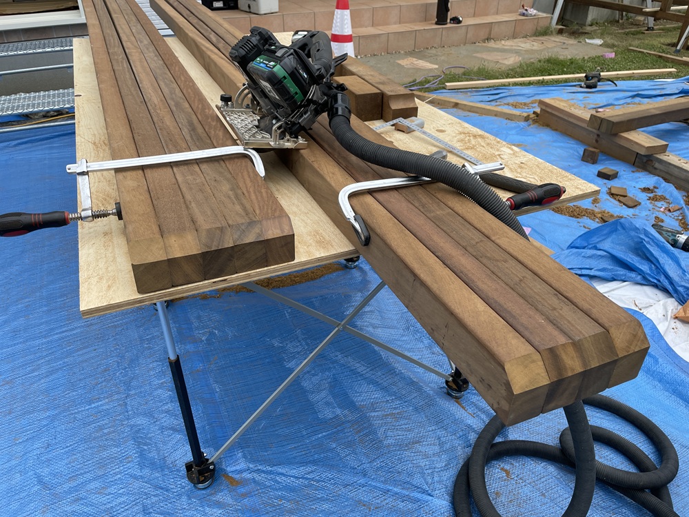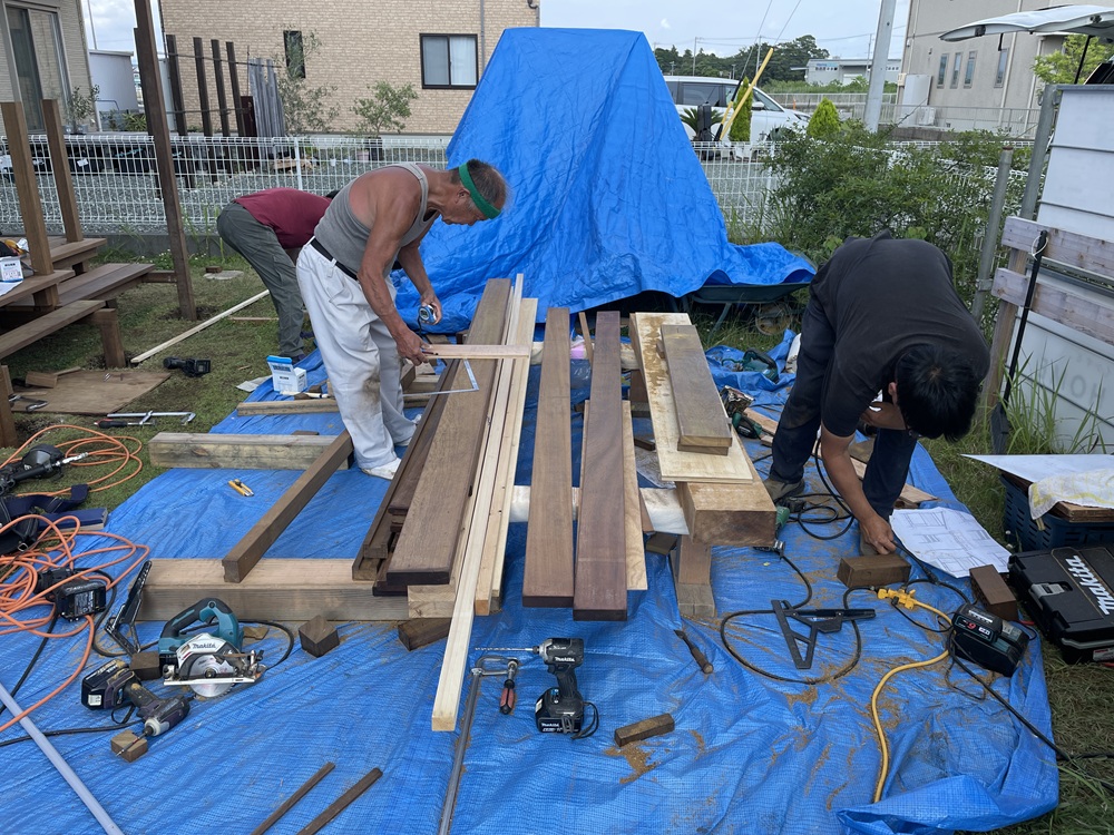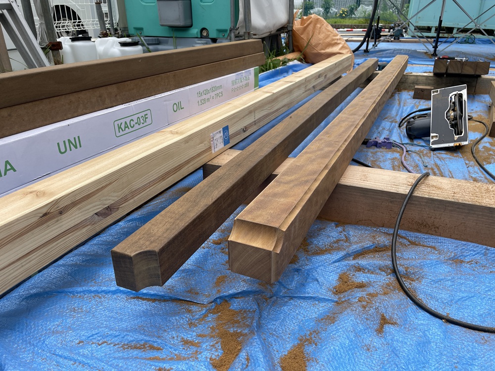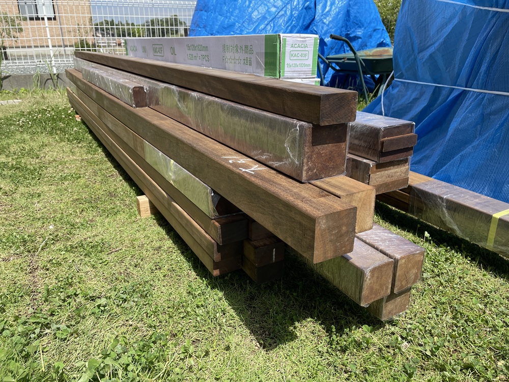 今回使用する材料はすべてイタウバと呼ばれる材料です。ハードウッドの部類に属される材料で油分を多く含んでおり、とかく心配される腐りや白アリに対しても耐久性の高い材料であることも特徴の一つです。