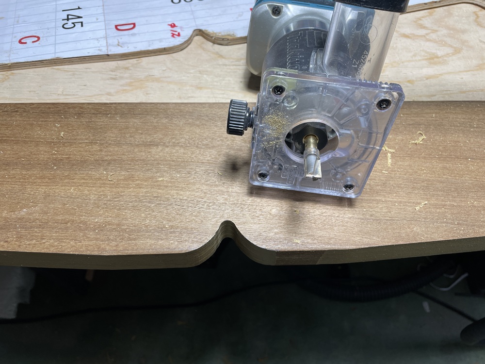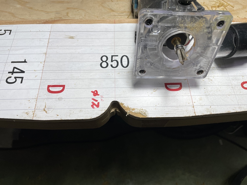 次に、トリマーやルーターと呼ばれる機械で型板に沿って綺麗に型取っていきます。