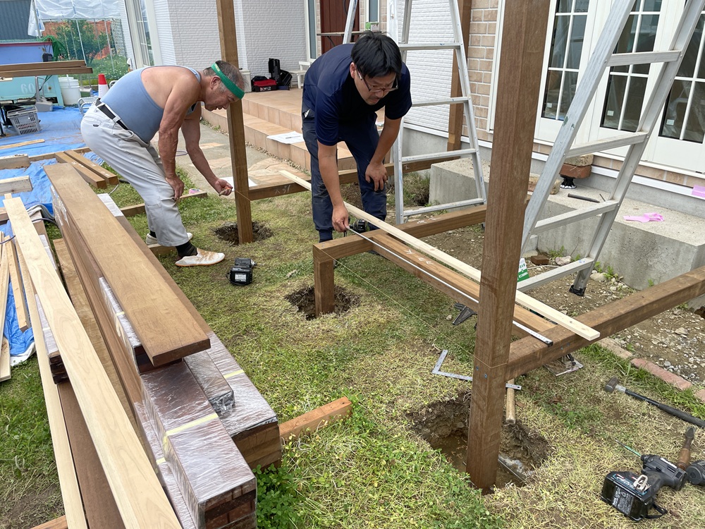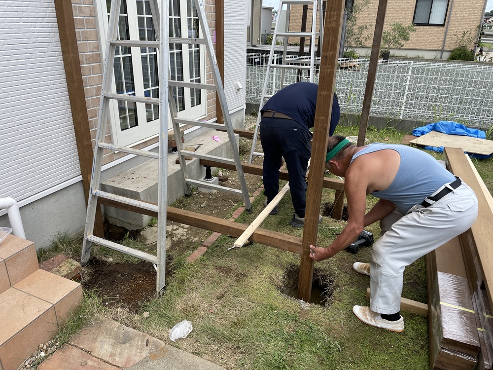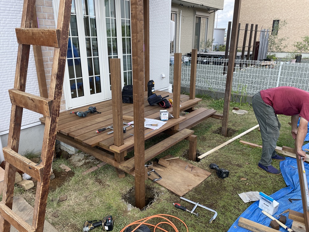 床部分のスノコも張られていき、よりデッキらしい形が見えてきています。
