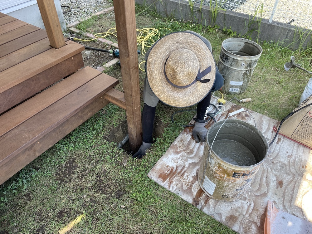 デッキの柱の位置と、地中に埋設されている既存の雨水排水管の通りがドンピシャ一致してしまいました汗