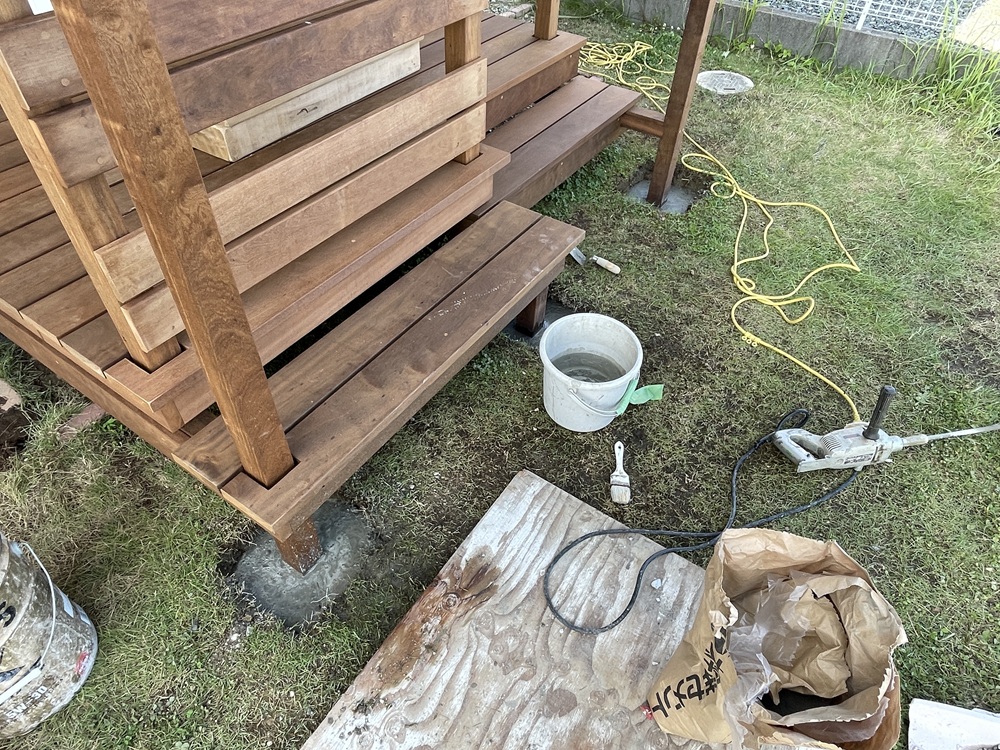 それではさっそくデッキ施工に!