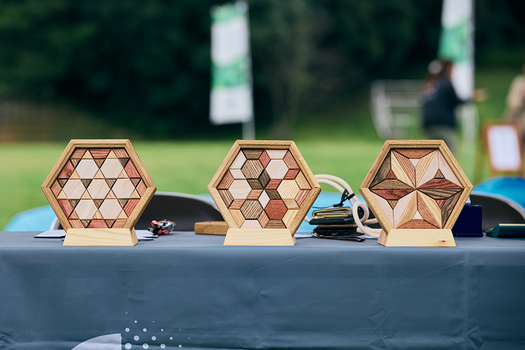 ワンズホームのブースでは、寄木細工のトレイづくりのワークショップをします!