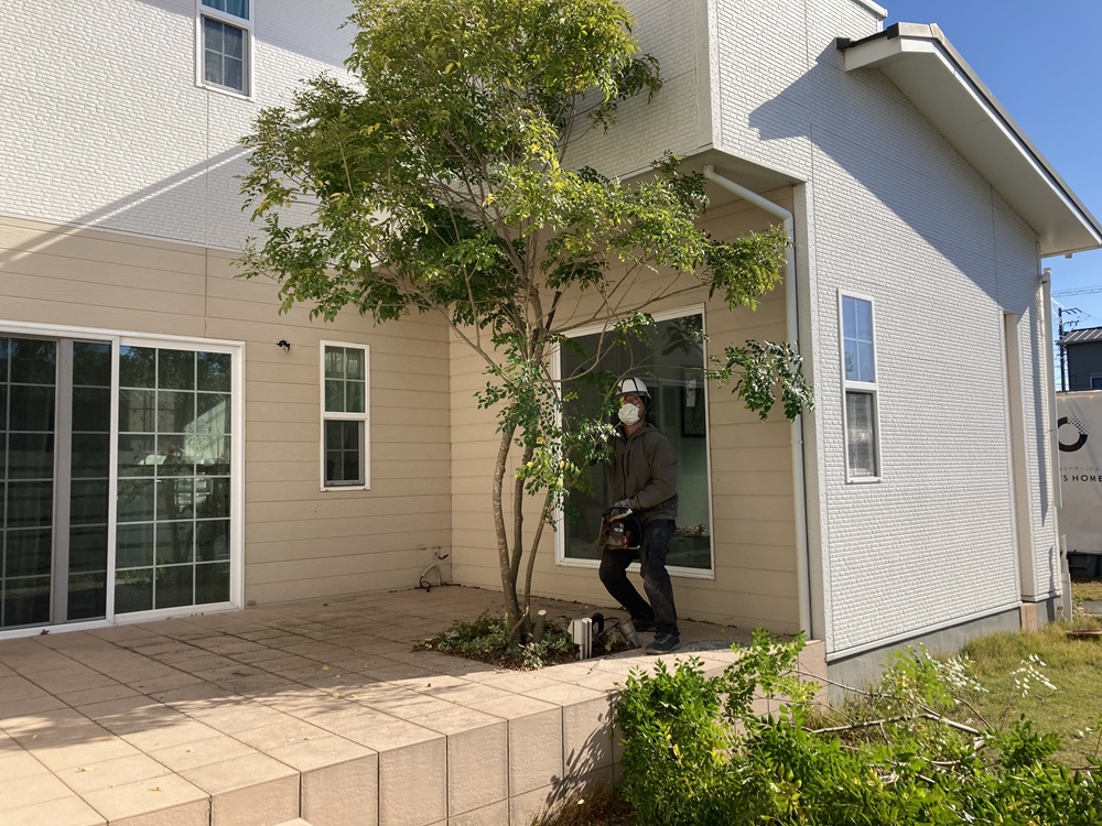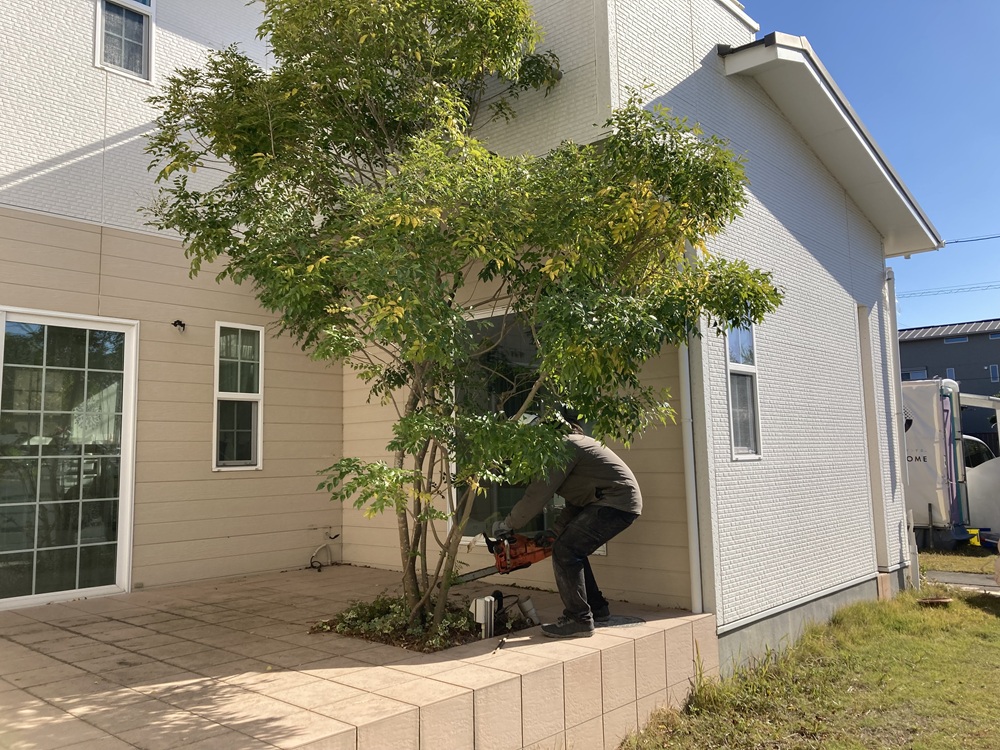 約18年という長い歳月を、ご家族と共にこの場で育ってきたシンボルツリーですが、いざ文明の利器を用いて切るとなればそれはほんの一瞬のことです。