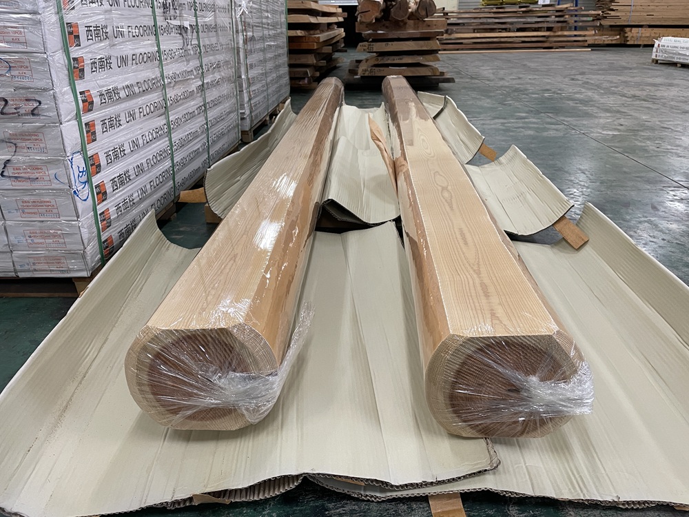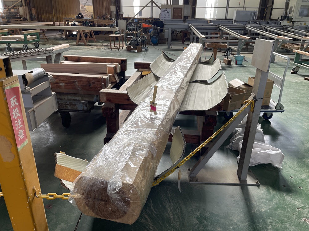 同じ丸太とはいえ建築材で使う丸太系は一般的にもっと太いものが多いですね。数寄屋建築では比較的細い丸太を意匠も兼ねて使ったりしますが、建物の構造部材では比較的大きなものが使われます。