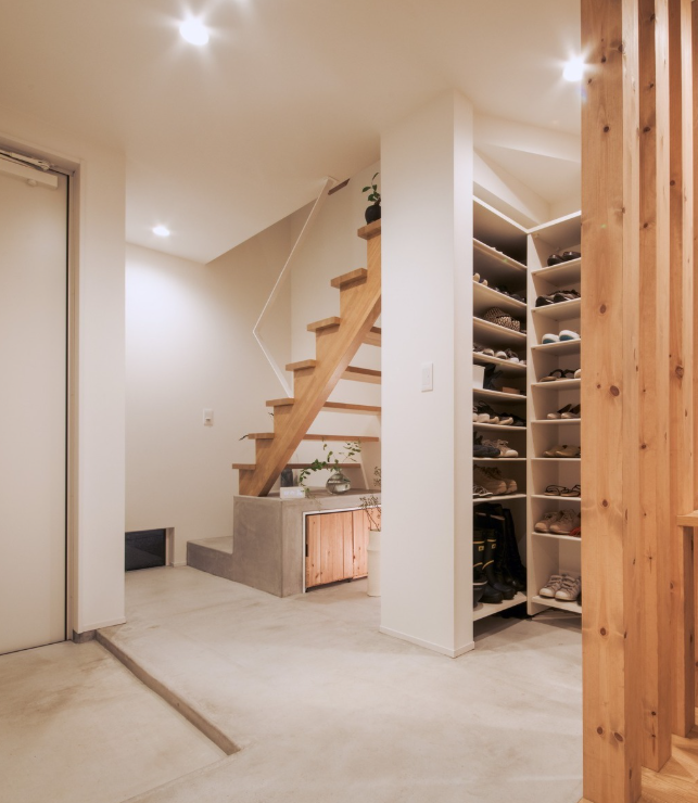 ワンズホームは玄関土間空間にタイルや、モルタルを採用することが多いのですが