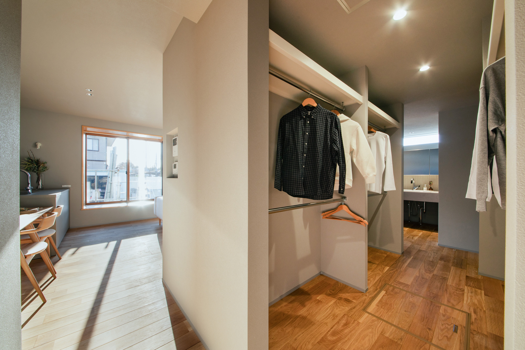 家族が自然に片付けられるよう、いちばん使いやすい場所にファミリークローゼットを配置。