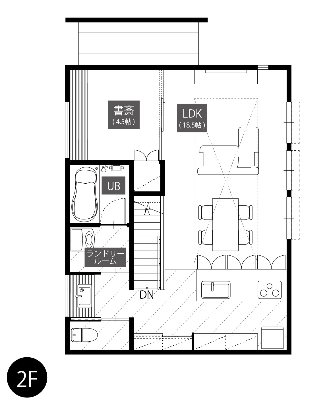 都会的で洗練された2階リビングの家