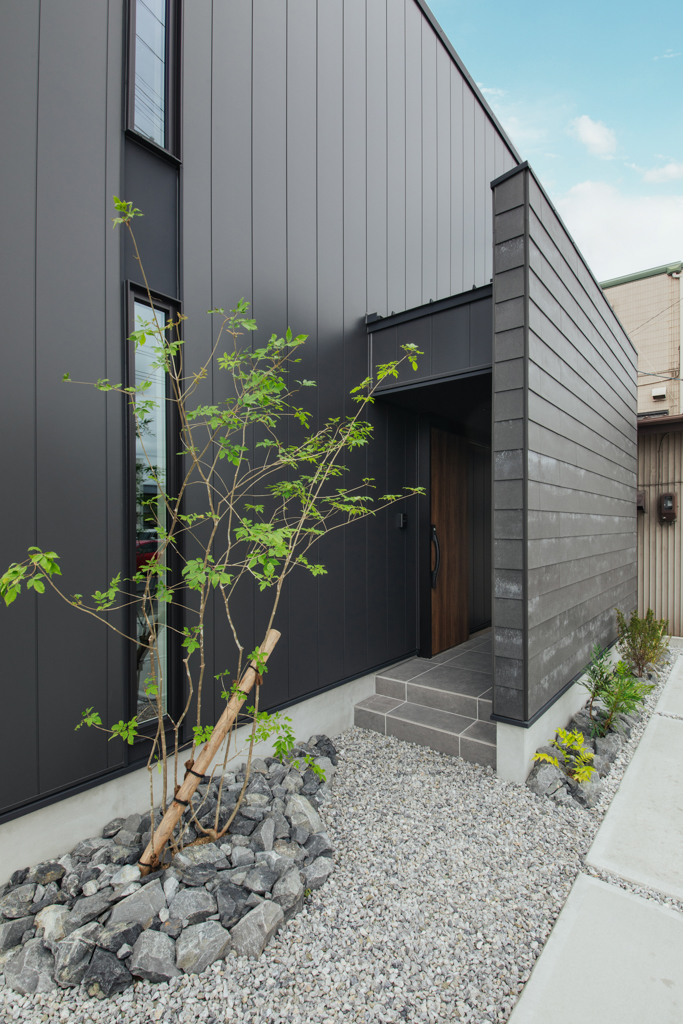 光沢感が美しい金属サイディングと、